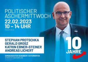 Von AfD Kreisverband München Ost|2026-03-12T07:30:27+01:003. Februar 2023|AfD Bayern, AfD Bezirk München, Aktuelles, M-Ost Aktuell, Pressemeldungen, Veranstaltungen|Kommentare deaktiviert für Politischer Aschermittwoch der AfD am 22.02.2023 in Osterhofen
